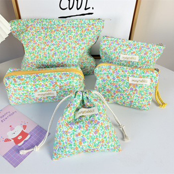 Vintage Small Floral Cosmetic Bag Zipper Large Capacity Portable Lipstick Skin Care Storage Travel Wash Sundries Inner Bag